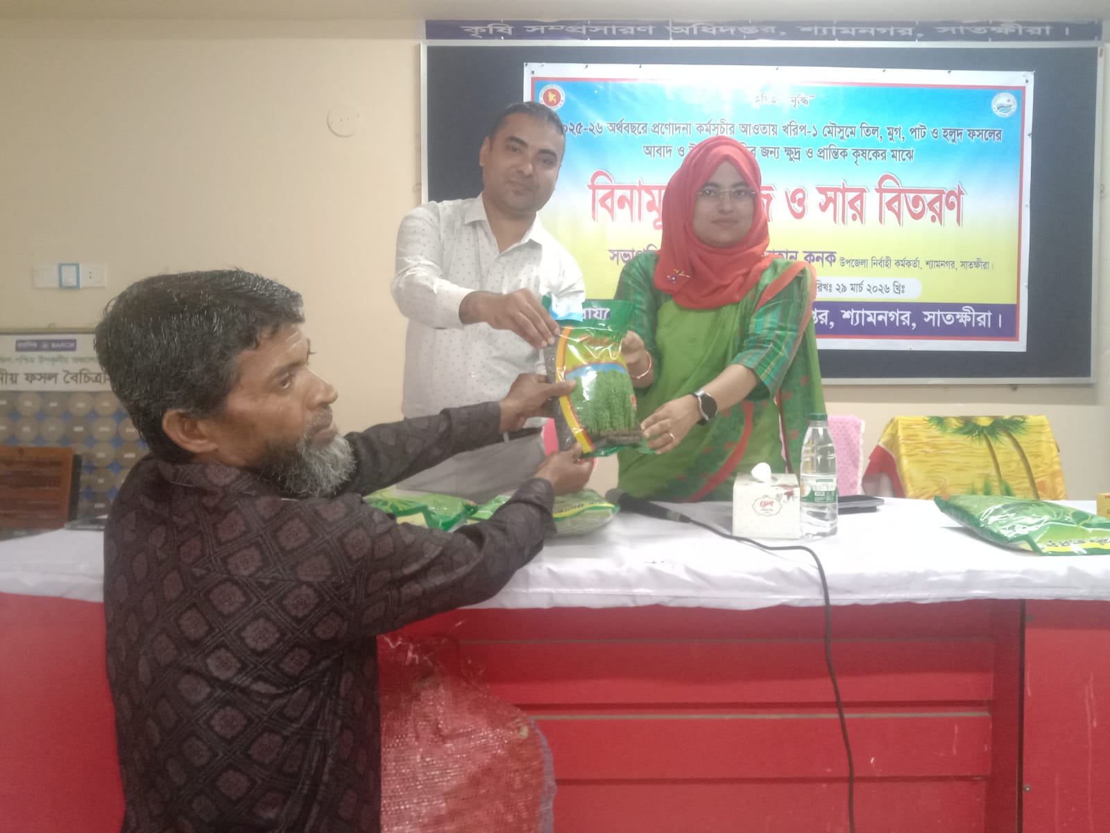 সাতক্ষীরার শ্যামনগর উপজেলায় ২০২৫-২৬ অর্থবছরে প্রণোদনা কর্মসূচীর আওতায় খরিপ-১ মৌসুমে ফসলের আবাদ ও উৎপাদন বৃদ্ধির জন্য ক্ষুদ্র ও প্রান্তিক কৃষকের মাঝে বিনামূল্যে বীজ ও সার বিতরণ করা হয়েছে।
