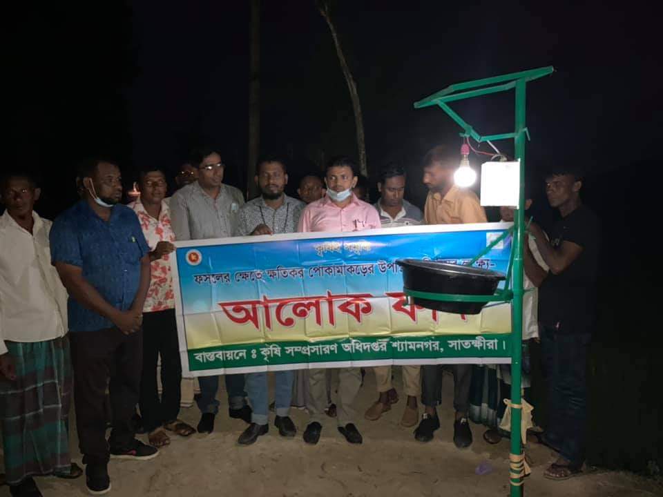 সাতক্ষীরার শ্যামনগর উপজেলা কৃষি সম্প্রসারণ অধিদপ্তরের আয়োজনে দেওল গ্রামে ফসলের ক্ষেতে ক্ষতিকর পোকার উপস্থিতি নির্ণয়ে আলোর ফাঁদ স্থাপন করা হয়।