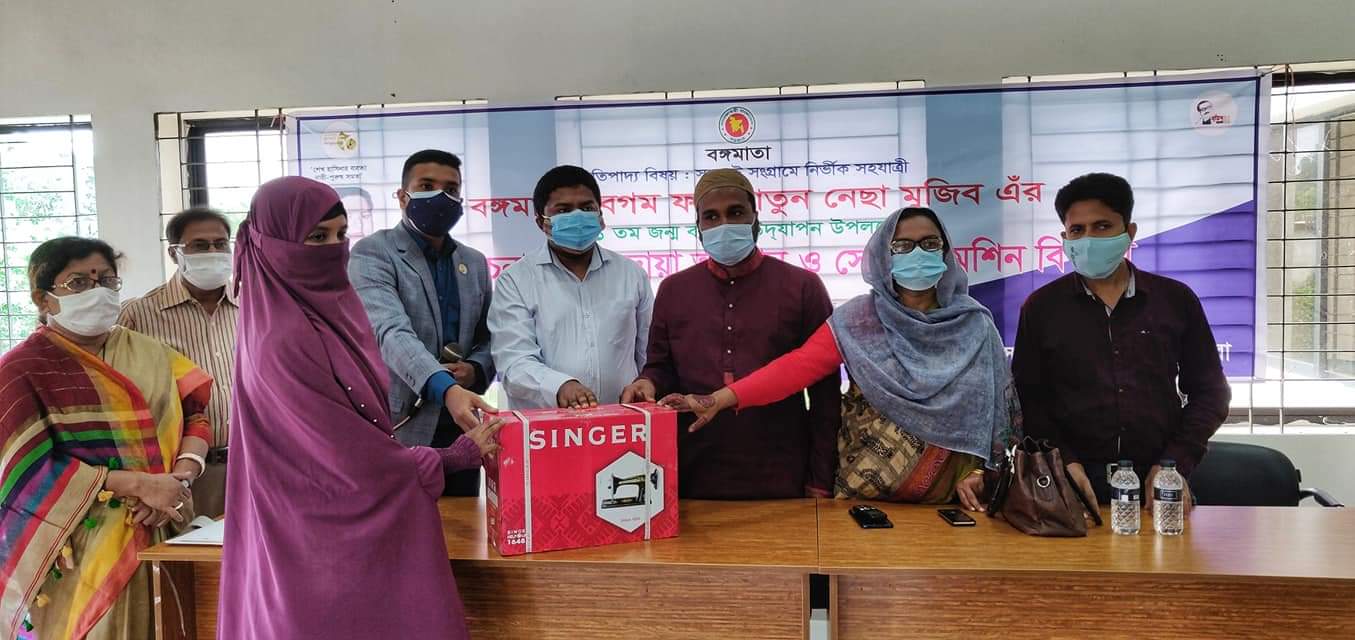 পর অনুষ্ঠানে প্রশিক্ষণপ্রাপ্ত দুঃস্থ ৭ জন মহিলার মাঝে ৭ টি সেলাই মেশিন বিতরণ করা হয়।