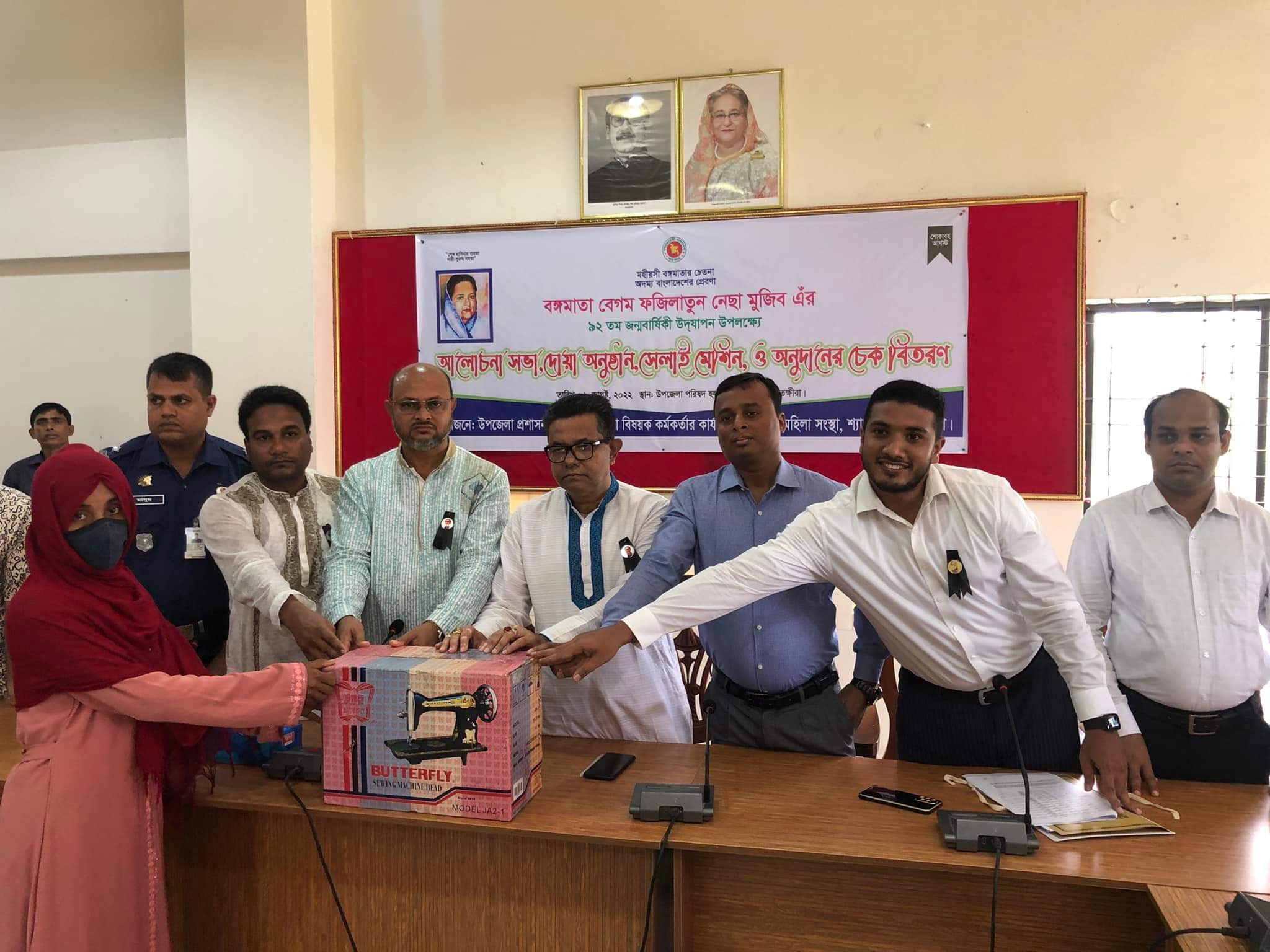 অনুষ্ঠানে দরিদ্র মহিলাদের মধ্যে সেলাই মেশিন ,অনুদানের চেক বিতরণ করা হয়।