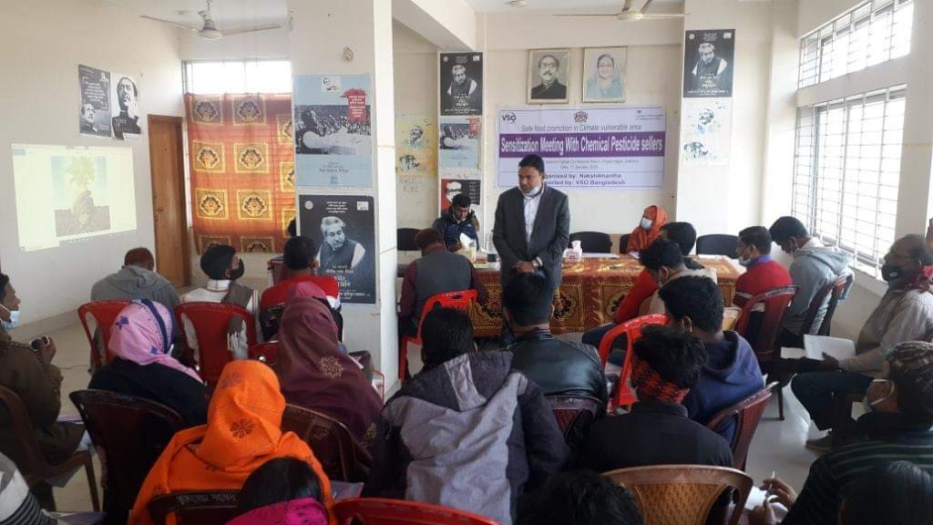 নকশীকাঁথার আয়োজনে ভিএসওইন বাংলাদেশের সহায়তায় সেভ ফুড প্রমোশন প্রকল্পের আওতায় নিরাপদ খাদ্য উৎপাদন ও বাজারজাত করণের লক্ষে সভায় প্রধান অতিথির বক্তব্যে উপজেলা কৃষি অফিসার কৃষিবিদ এস এম এনামুল ইসলাম বলেন বিষ মুক্ত , নিরাপদ খাদ্য উৎপাদনে প্রয়োজন ফসলে জৈব প্রযুক্তির ব্যবহার। তিনি কেঁচো কম্পোস্ট সার তৈরীর বিভিন্ন পদ্ধতি ,কীটনাশক বিহীন উৎপাদিত ফসলের উপকারিতা, জৈব পদ্ধতিতে ফসলের পোকাদমন পদ্ধতি সহ অন্যান্য বিষয়ে মাল্টিমিডিয়া ভিত্তিক বক্তব্য রাখেন।