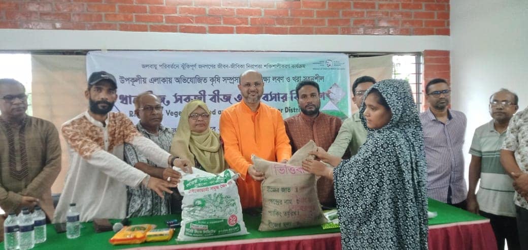 সাতক্ষীরার শ্যামনগর উপজেলায় লিডার্সের বাস্তবায়নে উপকূলীয় এলাকায় অভিযোজিত কৃষি সম্প্রসারণের ল্েয সংগঠনের প্রধান কার্যালয়ে প্রান্তিক কৃষকের মাঝে লবণ ও খরা সহনশীল ধানবীজ, জৈব সার ও সবজি বীজ ৭ জুলাই (রবিবার) সকাল ১১ টায় বিতরণ করা হয়েছে।