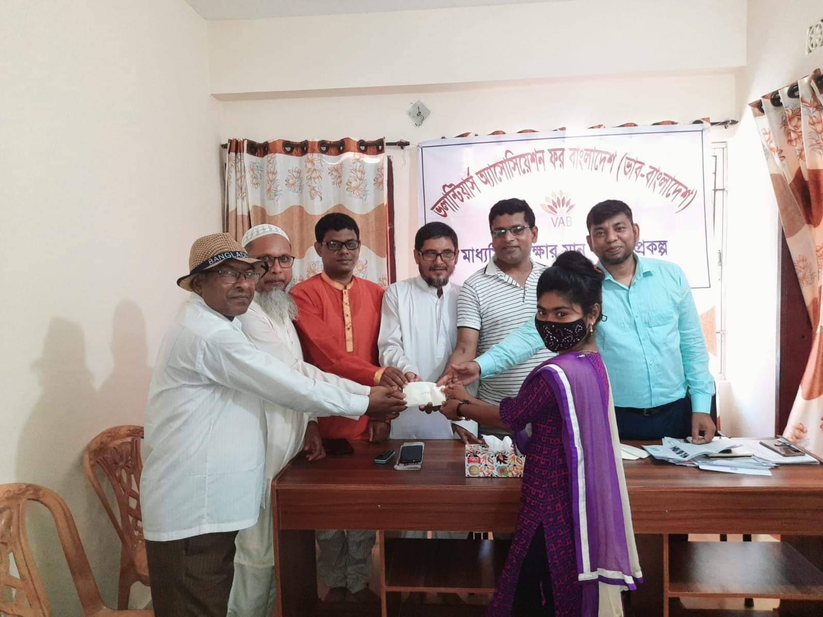 ছবি- শ্যামনগরে ভাব বাংলাদেশের বিশেষ বৃত্তির টাকা প্রদান করছেন উপজেলা একাডেমিক সুপারভাইজার মিনা হাবিবুর রহমান সহ অতিথিবৃন্দ।