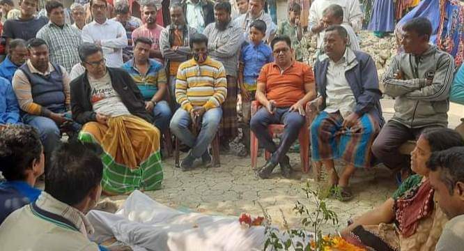 ছবি- শ্যামনগরে সাবেক ইউপি সদস্য সরোজিৎ মন্ডলের মৃত্যুতে এমপি জগলুল হায়দার সহ অন্যান্য নেতৃবৃন্দ সমবেদনা জানাতে তার বাড়ীতে।