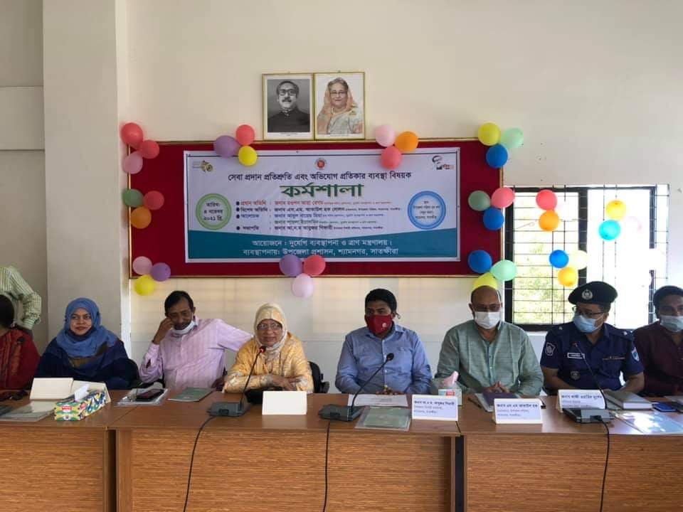ছবি- শ্যামনগরে সেবা প্রদান প্রতিশ্রুতি এবং অভিযোগ প্রতিকার ব্যবস্থাপনা বিষয়ক কর্মশালায় উপস্থিত অতিথিবৃন্দ।