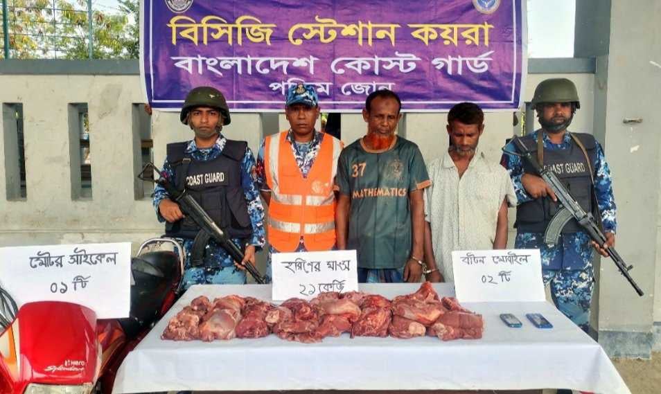 সাতক্ষীরার শ্যামনগর উপজেলায় ২১ কেজি হরিণের মাংস সহ দুই চোরা শিকারীকে আটক করেছে কোস্টগার্ড কর্মকর্তাবৃন্দ।