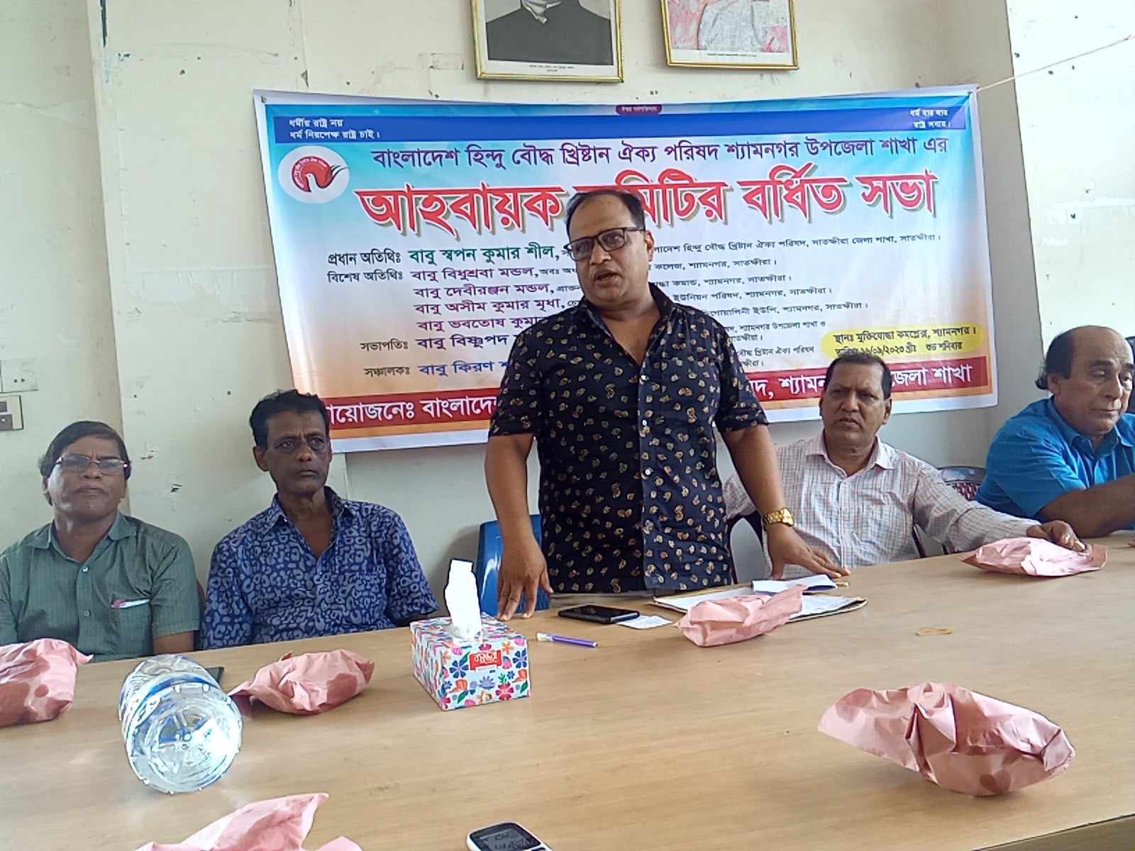 ছবি- শ্যামনগরে হিন্দু বৌদ্ধ খ্রিষ্টান ঐক্য পরিষদের বর্ধিত সভায় প্রধান অতিথির বক্তব্য রাখছেন জেলা কমিটির সাধারণ সম্পাদক স্বপন কুমার শীল।