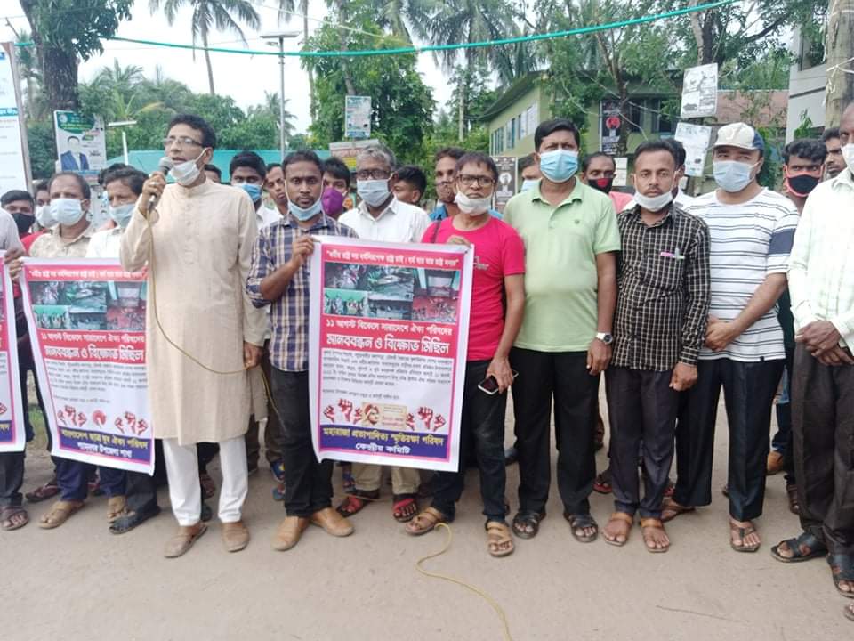 অপরদিকে সকালে একই স্থানে বাংলাদেশ পূজা উদ্যাপন পরিষদ শ্যামনগর উপজেলা শাখার আয়োজনে একই দাবীতে মানববন্ধনের আয়োজন করে। মানববন্ধন চলাকালিন সময়ে বক্তব্য রাখেন বাংলাদেশ পূজা উদ্যাপন পরিষদ শ্যামনগর উপজেলা শাখার সভাপতি রবীন্দ্র নাথ বিশ^াস, সাধারণ সম্পাদক এ্যাড. কৃষ্ণপদ মন্ডল, প্রভাষক সুশান্ত বিশ^াস বাবু লাল,তপন মন্ডল, কার্ত্তিক মন্ডল প্রমুখ।