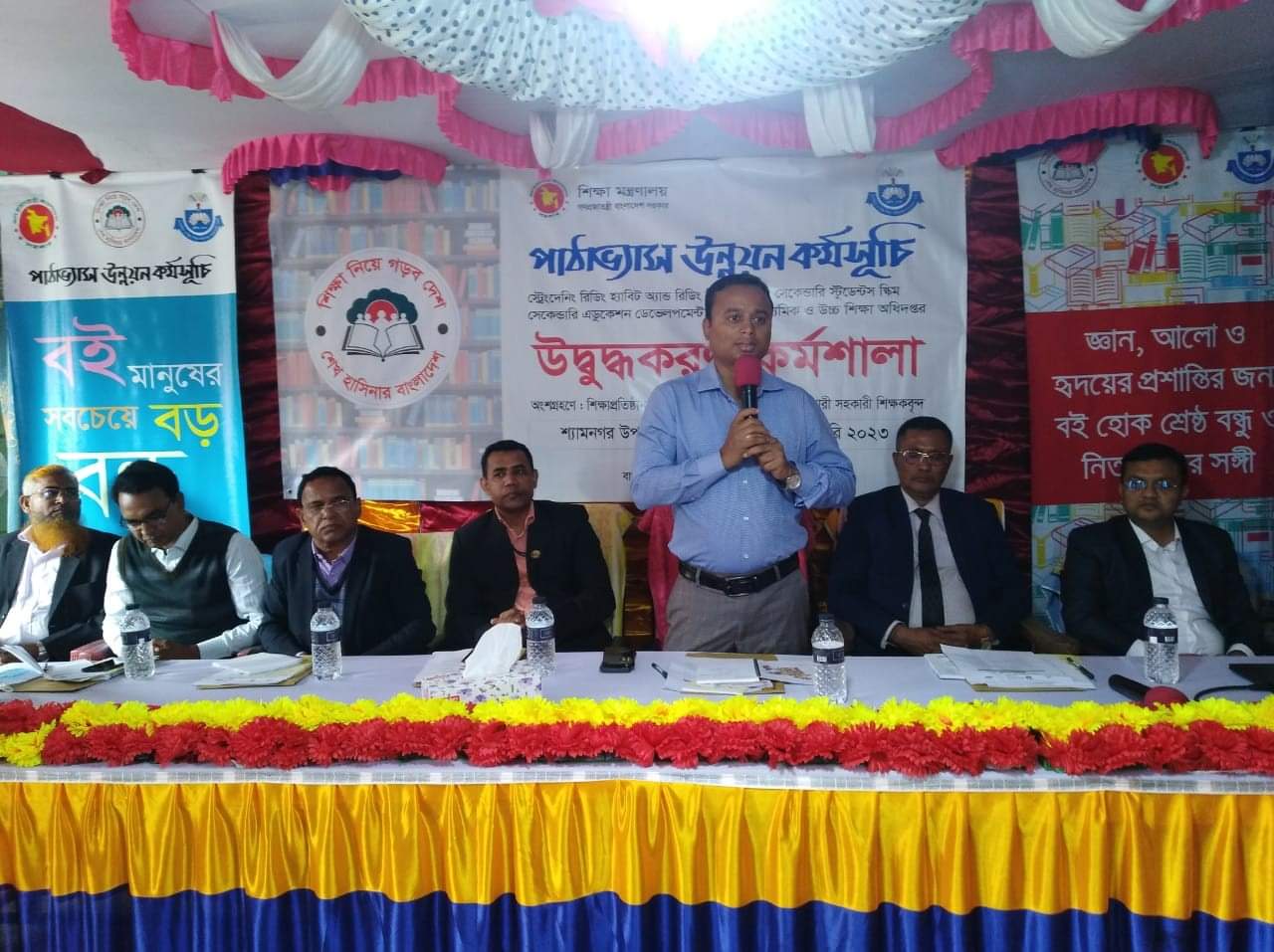 ছবি- শ্যামনগরে পাঠাভ্যাস উন্নয়ন কর্মসুচির উদ্বুদ্ধকরণ কর্মশালায় প্রধান অতিথির বক্তব্য রাখছেন ইউএনও মোঃ আক্তার হোসেন।