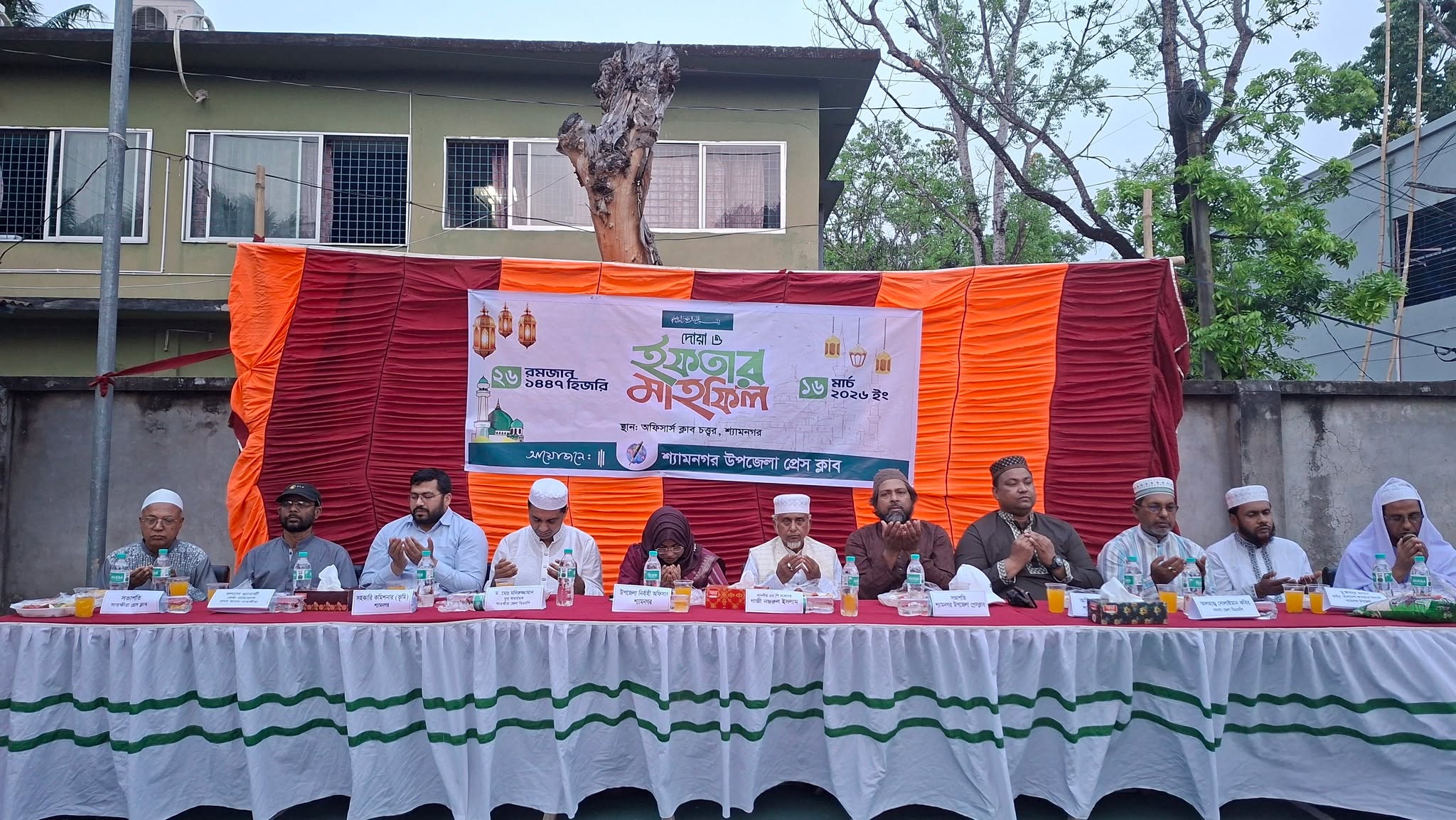 ছবি- শ্যামনগর উপজেলা প্রেসক্লাবের দোয়া ও ইফতার মাহফিলে উপস্থিত প্রধান অতিথি এমপি গাজী নজরুল ইসলাম সহ অন্যান্য অতিথিবৃন্দ।