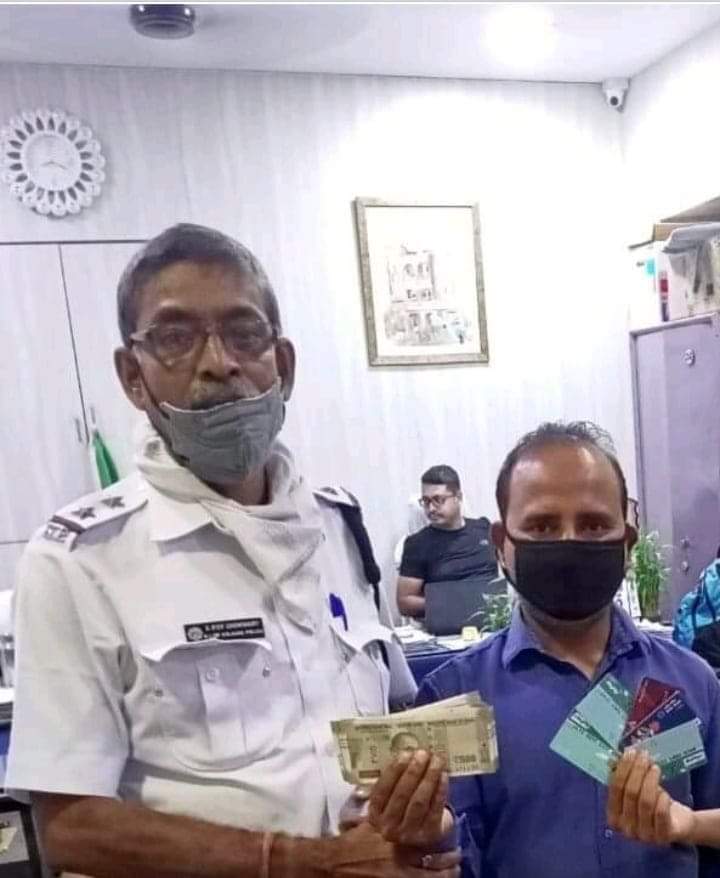 কলকাতার রাত দুটো প্রায় সুনসান রাস্তা ঘাট। মাঝে মাঝে কিছু প্রাইভেট গাড়ি ও পুলিশের টহলদারি গাড়ি চারিদিকে ঘুরে বেড়াচ্ছিল। হঠাৎ কলকাতার তারাচাঁদ দত্ত স্ট্রিটের কাছে একটি বেসরকারি এ টি এম ব্যাঙ্ক এর সামনে কিছু পড়ে থাকতে দেখেন টহলদারি করা কলকাতার জোড়াসাঁকো থানার সাব ইন্সপেক্টর শ্রী শক্তিমান রায় চৌধুরী। তিনি এগিয়ে গিয়ে দেখেন ঔ ব্যাঙ্ক এর সামনে পড়ে আছে মোট পাঁচটি এ টি এম কাড ও নগত কুড়ি হাজার টাকা। একটু খোঁজ করতে বেরিয়ে আসে এই এ টি এম কাড ও টাকার মালিক জনাব জালালউদ্দিন সাহেবের। সাব ইন্সপেক্টর শ্রী শক্তিমান রায় চৌধুরী তিনি টাকা ও এ টি এম কাড নিয়ে সোজা চলে যান জোড়াসাঁকো থানার ওসি জনাব আমানুল্লাহর কাছে। তিনি ফোন করে টাকার মালিক ও প্রমাণ পত্র নিয়ে আসতে বলেন জোড়াসাঁকো থানাতে। ঘন্টা খানেক পর এ টি এম ও টাকার মালিক জনাব জালালউদ্দিন সাহেব হাজির হয়ে প্রমাণ দেখিয়ে টাকা ফিরত নিয়ে যান। খুশি হয় দুই পক্ষ এমন নজির স্থাপন করেন কলকাতা পুলিশ। এর আগে কলকাতা পুলিশ সাধারণ মানুষের সাহায্য হাত বাড়িয়েছে তার বহু প্রমাণ ও নজির আছে। দেশ ও জাতির সেবায় নিয়োজিত আছেন কলকাতা পুলিশ।