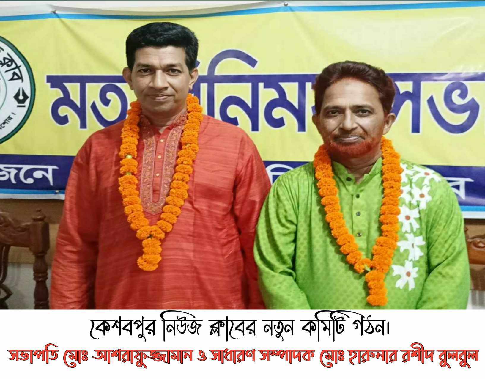 কেশবপুর নিউজ ক্লাবের নতুন কমিটি ঘোষণা করা হয়েছে। শুক্রবার ১ সেপ্টেম্বর বিকেলে নিউজ ক্লাবের হলরুমে সকল সদস্যদের উপস্থিতিতে ৩১ সদস্য বিশিষ্ট এ কমিটি ঘোষণা করেন ক্লাবের সাবেক সাধারণ সম্পাদক আব্দুর রাজ্জাক। কেশবপুর নিউজ ক্লাবের সাংবাদিকরা পুনরায় আশরাফুজ্জামানকে সভাপতি ও হারুনর রশীদ বুলবুলকে নতুন সাধারণ সম্পাদক হিসেবে নির্বাচিত করেন। আশরাফুজ্জামান ২০১১ সাল থেকে ২০২৩ সাল পর্যন্ত সুম্মানের সাথে সভাপতি হিসেবে দায়িত্ব পালন করায় তাকে পুনরায় সভাপতি ঘোষণা করা হয়। ক্লাবের অন্যান্য সদস্যদের বিভিন্ন পদে দায়িত্ব দেয়া হয়েছে। এ নবনির্বাচিত কমিটি আগামী তিন বছরের জন্য কেশবপুর নিউজ ক্লাবের কার্যক্রম সততার সঙ্গে পালন করবেন বলে অঙ্গিকার করেন। কমিটিতে সহ-সভাপতি,আব্দুর রাজ্জাক সরদার ও খায়রুল আনাম, যুগ্ম সাধারণ সম্পাদক সেলিম রেজা, যুগ্ম সাধারণ সম্পাদক পি কে মোদক, যুগ্ম সাধারণ সম্পাদক আবু বকর সিদ্দিক, যুগ্ন সাধারণ সম্পাদক রফিকুল ইসলাম বিপ্লব, যুগ্ম সাধারণ সম্পাদক ইউছুফ আলী, সাংগঠনিক সম্পাদক রাজীব চৌধুরী, সহ-সাংগঠনিক সম্পাদক মোস্তাফিজুর রহমান মিন্টু, সহ-সাংগঠনিক সম্পাদক শাহাজাহান কবীর, সহ-সাংগঠনিক সম্পাদক একরামুল হক, সহ-সাংগঠনিক সম্পাদক আবুল কালাম আজাদ মিন্টু,দপ্তর সম্পাদক আবু সালেহ মাসউদ হাসান, সহ-দপ্তর সম্পাদক মুন্জুরুল ইসলাম মুকুল, প্রচার সম্পাদক আজিজুর রহমান, সহ- প্রচার সম্পাদক আব্দুর রহমান রকি, তথ্য ও প্রযুক্তি বিষয়ক সম্পাদক ইমরান হোসেন , সাহিত্য সম্পাদক গোলাম ফারুক বাবু, সহ-সাহিত্য সম্পাদক হরি গোপাল বসু, সাংস্কৃতি বিষয়ক সম্পাদক অনিমেষ সাহা, ক্রীড়া সম্পাদক আব্দুল হালিম, লাইব্রেরিয়ান বিষয়ক সম্পাদক শফিকুল ইসলাম অপু, ফটো সাংবাদিক ফেরদাউস কামাল শাওন, কার্যকরি সদস্য রবিউল ইসলাম, মোঃ আজাহারুল ইসলাম, জয়দেব কুমার বিশ্বাস, মনতোষ কুমার দাস, জাহাঙ্গীর আলম, মোঃ আবু শাহিনকে সর্বসম্মতি ক্রমে নির্বাচিত করা হয়েছে।