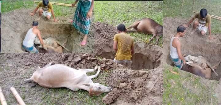 জামালপুরের সরিষাবাড়ীতে রাতের আঁধারে কৃষকের গোয়াল ঘরে খাবারের সাথে (কীটনাশক) বিষ মিশিয়ে দুটি গরুকে হত্যা করেছে দুর্বৃত্তরা।