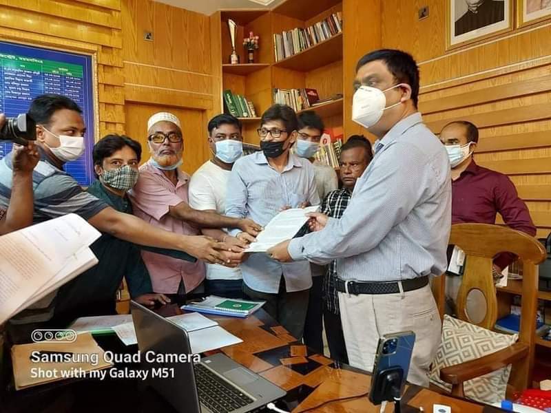 সাংবাদিকগন জেলা প্রশাসক মোহাম্মদ এনামুল হকের কাছে স্বারকলিপি দেয়ার সময় অতিরিক্ত জেলা প্রশাসক মোঃ জাহাঙ্গীর আলম উপস্থিত ছিলেন।