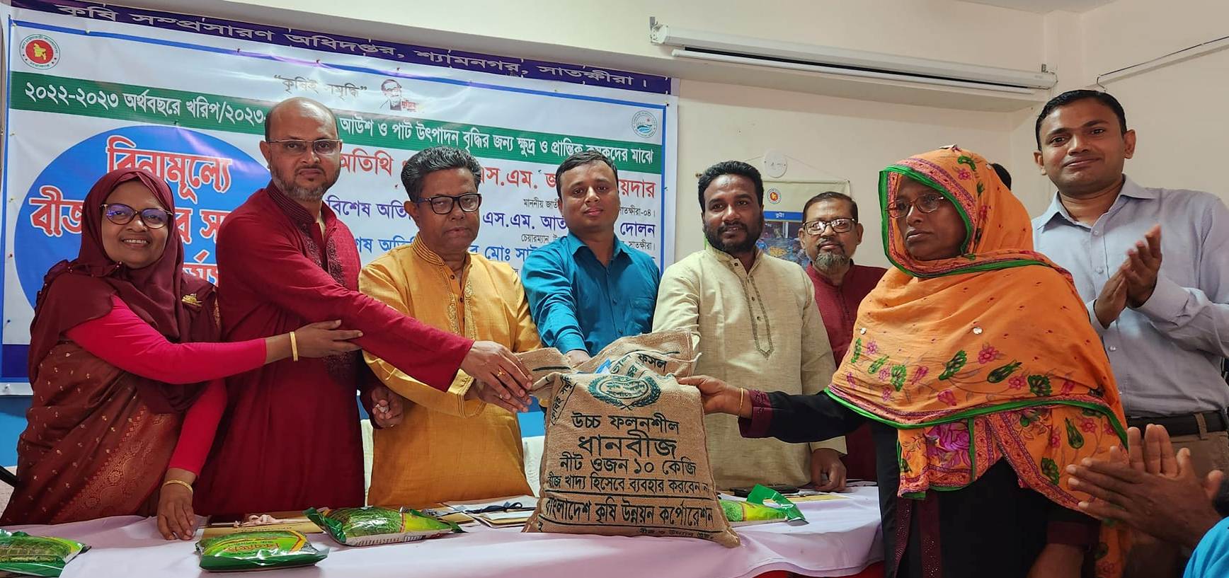 “কৃষিই সমৃদ্ধি” এ শ্লোগানকে সামনে রেখে সোমবার সকালে শ্যামনগর উপজেলা কৃষি সম্প্রসারণ অধিদপ্তরের আয়োজনে নিজস্ব হল রুমে আউশ ধান ও পাট উৎপাদন বৃদ্ধির জন্য বিনামূল্যে কৃষকদের মধ্যে বীজ ও সার বিতরণ করা হয়েছে।