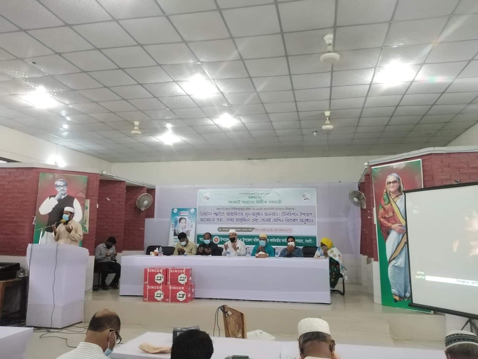 রোববার সকাল ১০ টায় উপজেলা প্রশাসন ও উপজেলা মহিলা বিষয়ক কার্যালয়ের আয়োজনে উপজেলা পরিষদ হল রুমে উপজেলা নির্বাহী অফিসার (ইউএনও) আব্দুল্লাহ আল মামুনের সভাপতিত্বে এক আলোচনা সভা অনুষ্ঠিত হয়। আলোচনা শেষে গণভবনে অনুষ্ঠিতব্য মূল অনুষ্ঠান বাংলাদেশ টেলিভিশনের মাধ্যমে প্রজেক্টরে দেখানো হয়। পরে বঙ্গবন্ধু, বঙ্গমাতা সহ সকল শহীদদের বিদেয়ী আত্মার মাগফেরাত কামনা করে দেশ ও জাতীর শান্তি কামনা করে দোয়া ও মোনাজাত করা হয়। এসময় প্রশিক্ষিত ৭ জন দুঃস্থ মহিলার মধ্যে ৭টি সেলাই মেশিন বিতরণ করা হয়।
