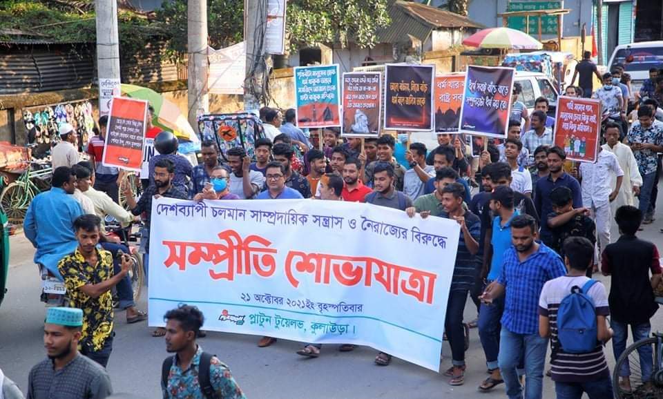 মৌলভীবাজারের কুলাউড়ায় দেশের বিভিন্ন স্থানে ঘটে যাওয়া সাম্প্রদায়িক সন্ত্রাসের বিরুদ্ধে নিন্দা জানিয়ে সম্প্রীতি সমাবেশ ও শান্তি শোভাযাত্রা করেছে স্থানীয় প্লাটুন টুয়েলভ নামে একটি সামাজিক সংগঠন।