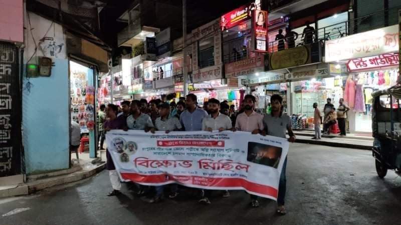 সোমবার সন্ধ্যায় জেলা ছাত্রলীগের কার্যালয় থেকে বিক্ষোভ মিছিল শুরু হয়। মিছিলটি শহরের বাটা মোড়, বিডিআর গেট প্রদক্ষিণ করে পুনরায় ছাত্রলীগ কার্যালয়ে এসে শেষ হয়।