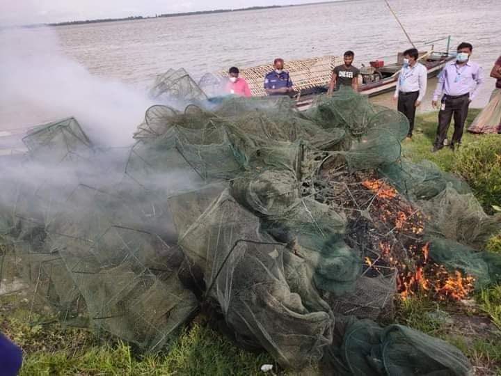 সোমবার (১৬ আগষ্ট) সিরাজগঞ্জ সদরের সিনিয়র উপজেলা মৎস্য কর্মকর্তা মোঃ আনোয়ার হোসেন এর নেতৃত্বে যমুনা নদীর সিরাজগঞ্জ সদর অংশে পরিচালিত অভিযানে ৫৯ টি অবৈধ চায়না দুয়ারী জাল আটক এবং পরবর্তীতে আগুনে পুড়িয়ে ধ্বংস করা হয়েছে।