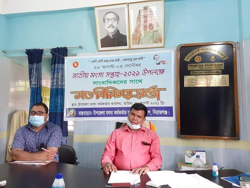 বেশি বেশি মাছ চাষ করি, বেকারত্ব দূর করি’ এ স্লোগান কে সামনে রেখে সিরাজগঞ্জের তাড়াশে জাতীয় মৎস্য সপ্তাহ -২০২১ উদযাপন উপলক্ষে সাংবাদিকদের সাথে মতবিনিময় সভা অনুষ্ঠিত হয়েছে।