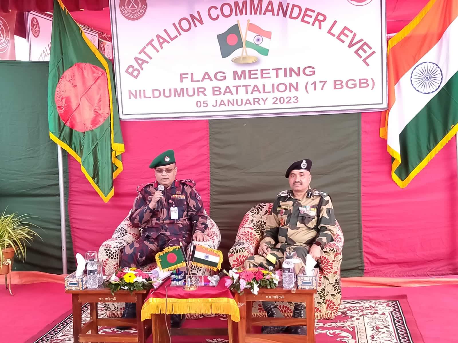 নীলডুমুর ব্যাটালিয়ন ১৭ বিজিবির উদ্যোগে ৫ জানুয়ারি বৃহস্পতিবার বেলা ১১টায় সাতক্ষীরার কালিগঞ্জ উপজেলার উকসা সীমান্তে বিজিবি ও ভারতীয় সীমান্তরীর (বিএসএফ) ঊর্ধ্বতন কর্মকর্তাদের মধ্যে পতাকা বৈঠক অনুষ্ঠিত হয়েছে।