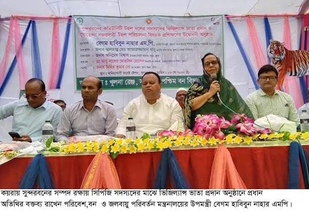 পরিবেশ,বন ও জলবায়ু পরিবর্তন মন্ত্রনালয়ের উপমন্ত্রী বেগম হাবিবুন নাহার এমপি বলেছেন, সুন্দরবনের সম্পদ রক্ষায় কমিউনিটি পেট্রোলিং গ্রুপের সদস্যদের আরো বেশি দায়িত্ব পালন করতে হবে।