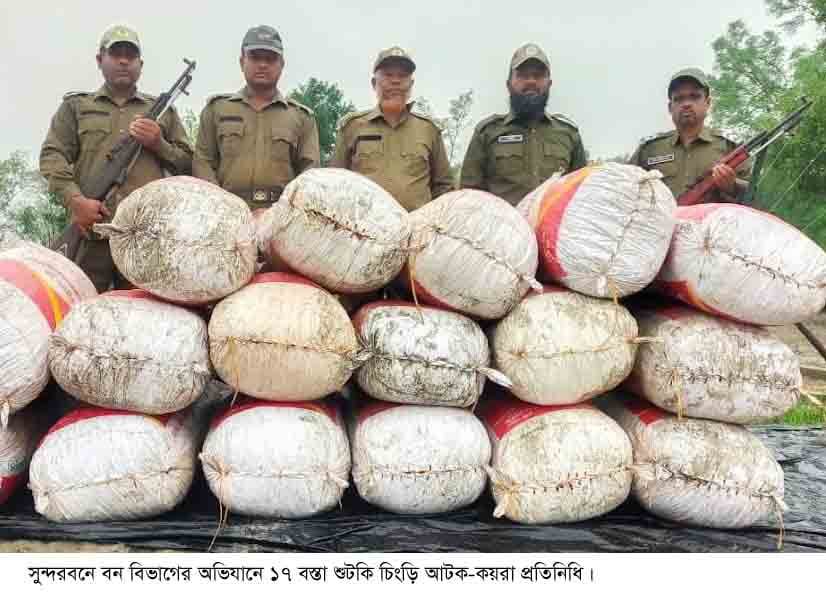 সুন্দরবন পশ্চিম বিভাগের খুলনা রেঞ্জের অধীনস্থ ভদ্রা টহল ফাঁড়ীর সদস্যরা পশুর নদীতে অভিযান চালিয়ে ১৭ বস্তা অবৈধ শুটকি চিংড়ি সহ ২ টি নৌকা জব্দ করেছে। এ সময় নৌকা থেকে ২ বোতল ভারতীয় নিষিদ্ধ কীটনাশক উদ্ধার করা হয়। তবে বন বিভাগের অভিযান জানতে পেরে শুটকি চিংড়ি মাছ পাচারকারীরা গহীন সুন্দরবনে পালিয়ে যেতে সক্ষম হয়।