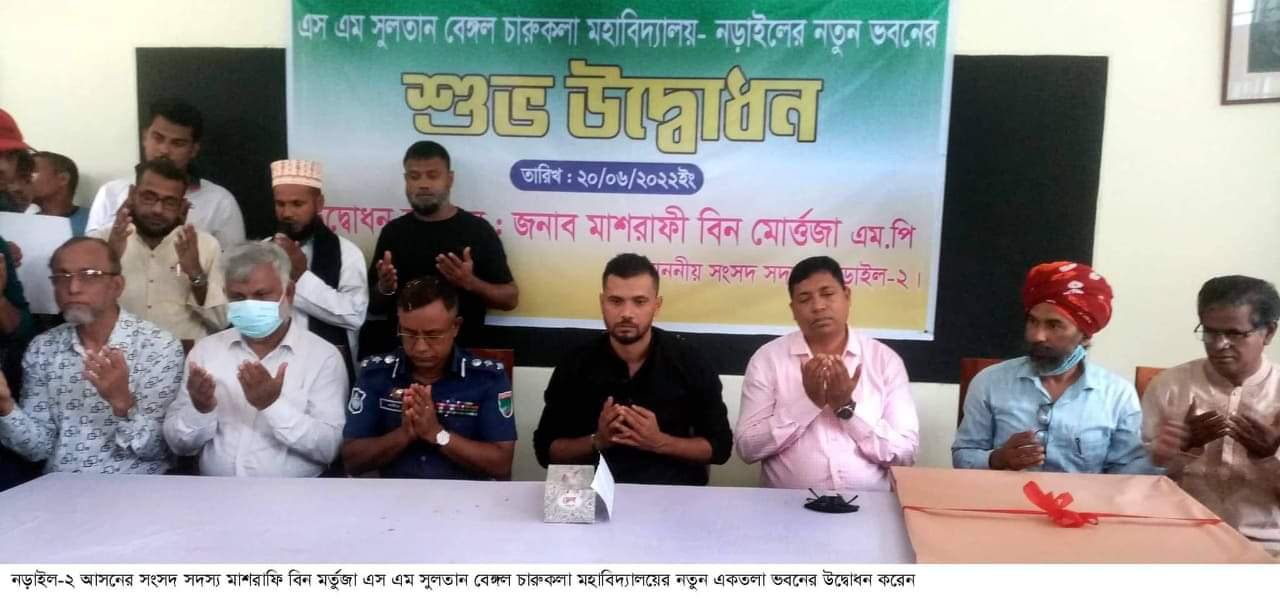 নড়াইল-২ আসনের সংসদ সদস্য মাশরাফি বিন মর্তুজা এস এম সুলতান বেঙ্গল চারুকলা মহাবিদ্যালয়ের নতুন একতলা ভবনের উদ্বোধন করেছেন। সোমবার (২০ জুন) দুপুরে নড়াইল পৌরসভাধীন মাছিমদিয়া এলাকায় কলেজ চত্বরে ভবনটির উদ্বোধন করেন তিনি।