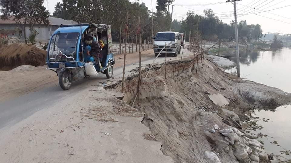 জানা যায়, ২০২১ সালের অক্টোবর মাসে হঠাৎ করে ভারতের উজান থেকে নেমে আসা পানির কারনে তিস্তা নদীতে পানিও বেড়ে যায়। সেই পানির প্রবল স্রোতে লালমনিরহাট জেলার কালীগঞ্জ উপজেলার কাকিনা ইউনিয়নের রুদ্রেশ্বর গ্রামের বাড়াই পাড়া এলাকায় কাকিনা-রংপুর সড়কটি প্রায় ৩শত মিটার রাস্তা ধ্বসে যায়, সেই ধ্বসে যাওয়া অংশে দিন দিন মরন ফাঁদ তৈরি হয়েছে। প্রতিনিয়ত ঘটছে ছোট বড় দুর্ঘটনা। যেন দেখার কেউ নেই!
