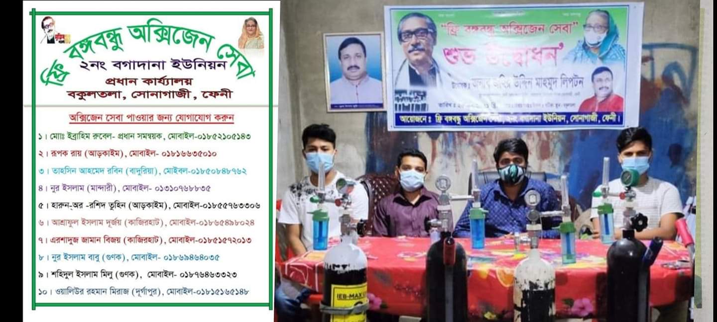 সোনাগাজীর ২নং বগাদানা ইউনিয়নের সাবেক ছাত্রলীগ সভাপতি প্রধান সমন্বয়ক মো: ইব্রাহিম রুবেল এর নেতৃত্বে, বর্তমান ইউনিয়ন ছাত্রলীগের সাধারণ সম্পাদক সহযোগী সমন্বয়ক তাহছিন আহম্মদ রবিনসহ সোনাগাজীর প্রত্যন্ত অঞ্চলে দিনরাত ছুটে চলছে "ফ্রী বঙ্গবন্ধু অক্সিজেন সেবা" নিয়ে। গত ২৫শে জুলাই-২১ সোনাগাজী উপজেলা চেয়ারম্যান জহির উদ্দিন মাহমুদ লিপটন এর উদ্বোধনের মধ্য দিয়ে বগাদানা ইউনিয়ন ফ্রী বঙ্গবন্ধু অক্সিজেন সেবা পথ চলা শুরু।