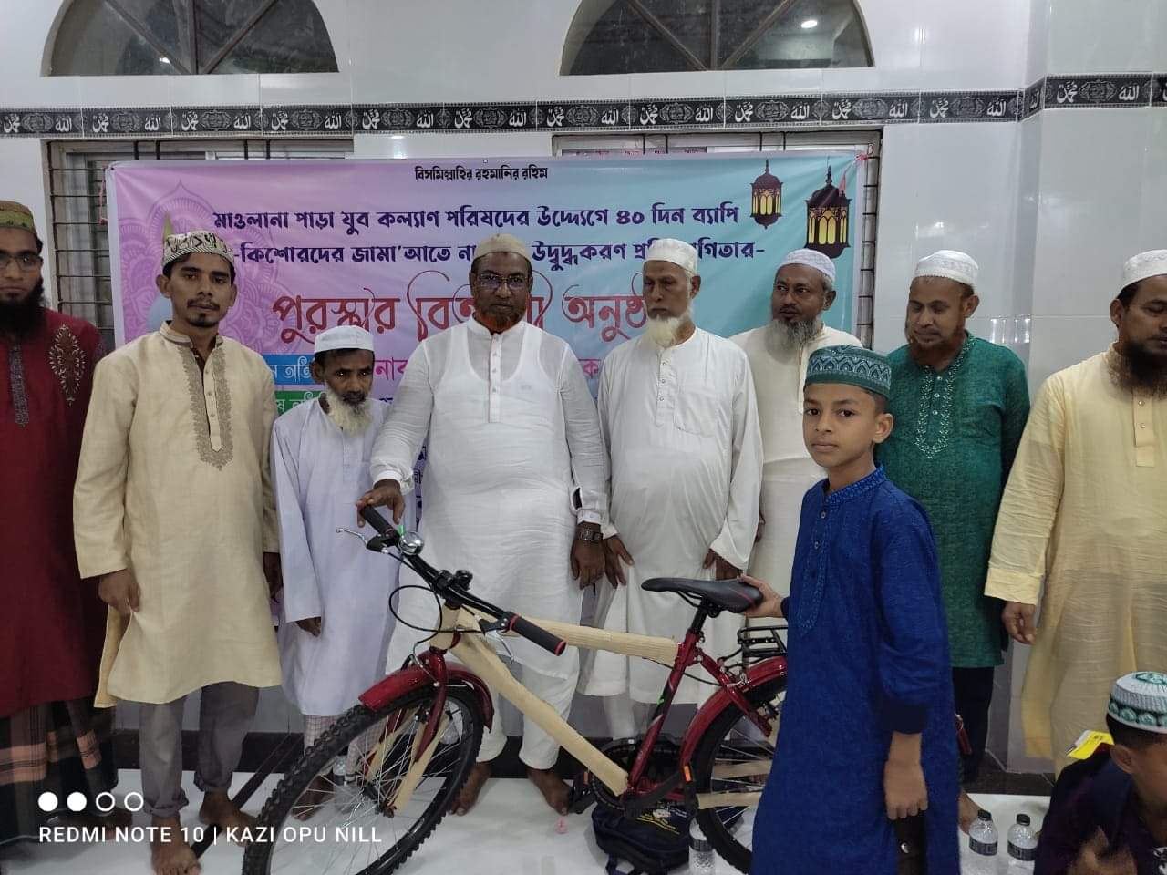 ফেনীর সোনাগাজী উপজেলার মাওলানা পাড়ায় টানা ৪০ দিন জামাতের সাথে নামাজ আদায় করে বাইসাইকেল উপহার পেলো ৩০ জন কিশোর।