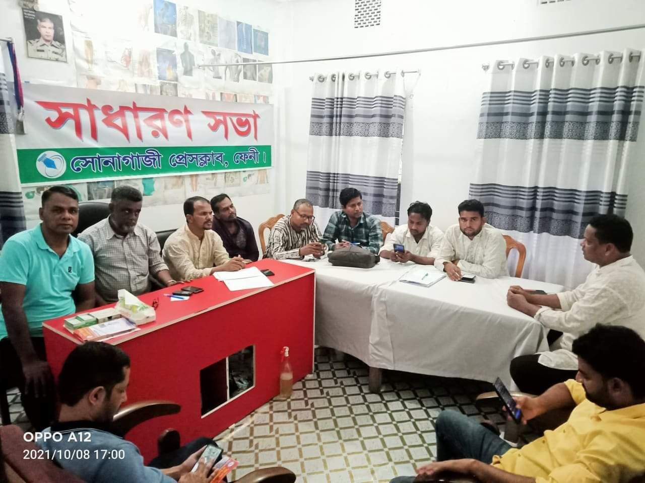 সোনাগাজী প্রেসক্লাবের মাসিক সাধারণ সভা ৮ অক্টোবর ২০২১ শুক্রবার বিকেলে ক্লাবের অস্থায়ী কার্যালয়ে অনুষ্ঠিত হয়। ক্লাবের সভাপতি মোঃ ওবায়দুল হকের সভাপতিত্ব ও সাধারণ সম্পাদক আফতাব হোসেন মমিন ভূঞার সঞ্চালনায় অনুষ্ঠিত হয়।