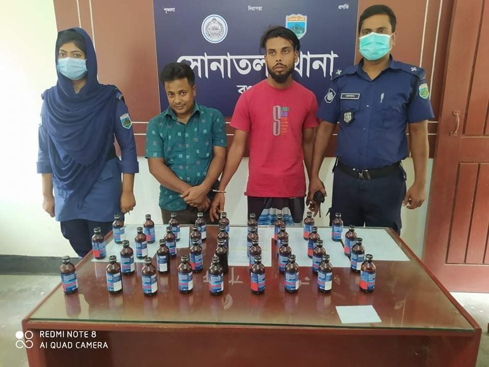 থানা অফিসার ইনচার্জ রেজাউল করিম রেজার নের্তৃত্বে এসআই ইয়ামিন আলী সঙ্গীয় ফোর্সসহ একটি অভিযান পরিচালনা করেন। ১৪ সেপ্টেম্বর দুপুর ২.৩০ ঘটিকার সময় সোনাতলা উপজেলাধীন বালুয়াহাটে মাদক বিরোধী অভিযান পরিচালনা সময় ৩৫ বোতল ভারতীয় নিষিদ্ধ ফেনসিডিল ও একটি ডিসকভার ১০০ সিসি মোটরসাইকেল সহ ২ মাদক ব্যবসায়ীকে গ্রেফতার করা হয়।