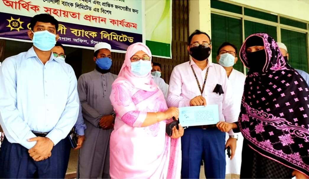 দেশে চলমান করোনাভাইরাস (কোভিড-১৯) এর সংক্রমন জনিত সংকট মোকাবেলায় কর্পোরেট সামাজিক দায়বদ্ধতা (সিএসআর) কার্যক্রমের আওতায় চাঁদপুরের হতদরিদ্র, সাময়িক কর্মহীন এবং প্রান্তিক জনগোষ্ঠীর জন্যে সোনালী ব্যাংক লিমিটেড এর বিশেষ আর্থিক সহায়তা প্রদান কার্যক্রম সম্পন্ন হয়েছে। কার্যক্রমের অংশ হিসেবে ৮৮জন কে ২হাজার টাকা করে মোট ১লাখ ৭৬হাজার টাকা সহায়তা প্রদান করা হয়।
