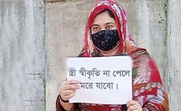 সিলেটে্ এক যুবকের বাড়ির সামনে গত দুদিন থেকে স্ত্রীর স্বীকৃতি পেতে অবস্থান ধর্মঘট করছেন এক নারী।