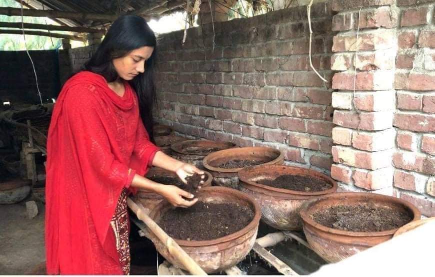 কেঁচো কম্পোস্ট সার উৎপাদনে স্বপ্নের কৃষি পদক ছোঁয়ার দাঁড়প্রান্তে যশোরের ঝিকরগাছার সফল নারী উদ্যোক্তা নাসরিন সুলতানা। অদম্য ইচ্ছাশক্তি ও মেধাশক্তির মাধ্যমে ক্রমাগতই তিনি ভাগ্য বদলিয়েই চলেছে। একজন নারী উদ্যোক্তা হিসাবে সফলতা পেতে বর্তমানে ঝিকরগাছা উপজেলায় নাসরিন সুলতানার নাম উজ্জ্বল করেছেন তার কর্মদক্ষতাকে মূল্যায়ন করে। নাসরিন সুলতানা যশোর জেলার ঝিকরগাছা উপজেলার গদখালী ইউনিয়নের বারবাকপুর গ্রামের লুৎফর রহমানের মেয়ে। তার মায়ের নাম শিউলী বেগম। দুই ভাই বোনের মধ্যে সে সবার ছোট। নাসরিন সুলতানা উপজেলার দিগদানা খোশালনগর দাখিল মাদরাস্ াকারিগরি এবং কৃষি কলেজে ডিপ্লোমা ইন এগ্রিকালচার শিক্ষা কার্যক্রমের উপর ডিপ্লোমা কোর্স শেষ করার পাশাপাশি জাতীয় বিশ^বিদ্যালয়ের অধীনে ঝিকরগাছা মহিলা ডিগ্রি কলেজ থেকে সমাজ বিজ্ঞান বিভাগে অনার্সের (সম্মান) সমাপ্ত করেছেন। তিনি কেঁচো কম্পোস্ট (ভার্মি কম্পোস্ট) সার কারখানার মালিক। নাসরিন সুলতানা কেঁচো কম্পোস্টের (ভার্মি কম্পোস্ট) মাধ্যমে তৈরি করছেন জৈবসার। এই সারের চাহিদা ক্রমশই বাড়ছে। তবে বিনিয়োগ বাড়াতে না পাড়ায় উৎপাদন বাড়াতে হিমশিম খাচ্ছেন তিনি। তার মতে, ৮-১০লক্ষ টাকার বিনিয়োগ করতে পারলে তিনি উৎপাদন বাড়াতে পারতেন আরো কয়েকগুণ। এতে এলাকার বাহিরের অন্যান্য কৃষকদেরও চাহিদা মতো ভার্মি কম্পোস্ট সারের জোগান দিতে পারতেন তিনি। জৈবসার ব্যবহারে জমির উর্বরাশক্তি বৃদ্ধির পাশাপাশি ফসলের ফলনও বৃদ্ধি হয় অনেকগুণ। নাসরিন সুলতানার কারখানায় প্রতি নান্দায় (মাটিরপাত্র) প্রতি মাসে তৈরি হয় ৭৫০-৮০০কেজি জৈবসার। কারখানায় নান্দা রয়েছে ১৫০টি। সে এই জৈবসার বিক্রয় করে নিজের লেখপড়ার খরচ যোগান দিয়ে ঝিকরগাছা মহিলা ডিগ্রি কলেজে সমাজ বিজ্ঞান বিভাগে অনার্স (সম্মান) শেষ করেছেন। পিতার সংসার থেকে নেওয়ার চেয়েও সংসারেও আর্থিক যোগান দেন তিনি। কেঁচো কম্পোস্ট সার তৈরি ও বিক্রি করে অভাবী পিতামাতার সংসারে স্বচ্ছলতা ফিরিয়ে এসেছে। নাসরিন প্রমাণ করে দিয়েছেন মেয়েরা কখনো পিতামাতার সংসারের বোঝা নয়। তারাও তাদের নিজের ইচ্ছাশক্তি ও মেধাকে কাজে লাগিয়ে হতে পারেন সফল উদ্যোক্তা। ঝিকরগাছার নাসরিন সুলতানা হতে পারে আমাদের যশোর জেলার অনুকরণীয় দৃষ্টান্ত ! পাঁচবছর আগে ১০০ গ্রাম কেঁচো দিয়ে দু’টি নান্দায় দু’ঝুড়ি গোবর দিয়ে কেঁচো কম্পোস্ট সার তৈরির প্রাথমিক ধাপের যাত্রা শুরু করেছিল। প্রথমদিকে সহপাঠী, প্রতিবেশীরা উপহাস করলেও এখন তারা রীতিমত উৎসাহের পাশাপাশি অনেকেই আবার নিজেই এই কেঁচো কম্পোস্ট সার তৈরিতে আগ্রহ প্রকাশ করছেন।