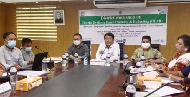 ডিস্ট্রিক্ট এভিডেন্স বেসড প্ল্যানিং অ্যান্ড বাজেটিং (ডিএপিবি) ইমিউনাইজেশন সম্প্রসারিত প্রোগ্রাম (ইপিআই) তিন দিনব্যাপী জেলা পর্যায়ের পরিকল্পনা কর্মশালার উদ্বোধন করেন রাঙ্গামাটি পার্বত্য জেলা পরিষদের চেয়ারম্যান অংসুইপ্রু চৌধুরী।