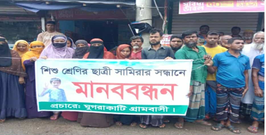 ৩ সেপ্টেম্বর বুধবার সকালে ঘুগরাকাটি বাজারে মাদ্রাসা গেটের সামনে এই মানববন্ধন কর্মসূচী পালিত হয়। উক্ত মানববন্ধন কর্মসূচীতে অংশ গ্রহণ করে নিখোঁজ সামিরার পরিবার, আত্মীয়-স্বজন, সহপাঠী ও এলাকার বিভিন্ন শ্রেণিপেশার মানুষ। নিখোঁজ সামিরার চাচা জাহাঙ্গীর আলম বলেন, থানায় জিডি করার পরও সামিরার খোঁজে প্রশাসনের গাফিলতিকে দায়ী করেন।