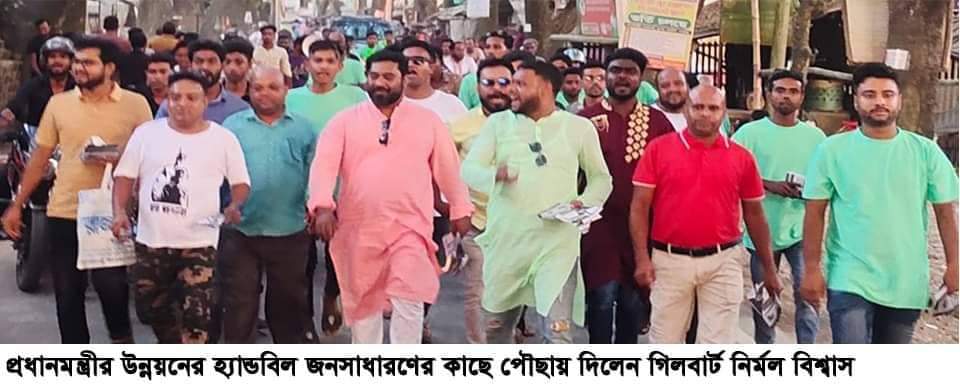 প্রধানমন্ত্রীর উন্নয়নের হ্যান্ডবিল জনসাধারণের কাছে পৌছায় দিলেন গিলবার্ট নির্মল বিশ্বাস
