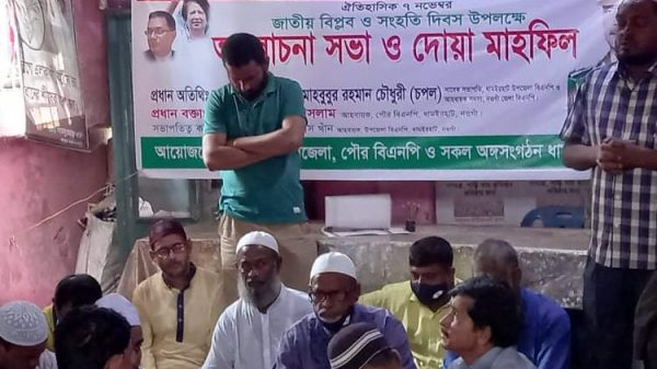 নাজিরুল ইসলাম, শাজাহানপুর (বগুড়া) প্রতিনিধি: বগুড়ার শাজাহানপুর উপজেলা বিএনপির উদ্দ্যোগে জাতীয় বিপ্লব ও সংহতি দিবস উপলক্ষ্যে রবিবার সন্ধ্যায় দলীয় কার্যালয়ে আলোচনা সভা ও দোয়া মাহফিল অনুষ্ঠিত হয়েছে। এতে প্রধান