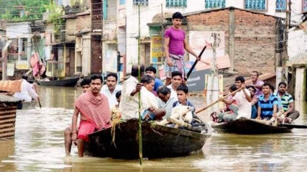 অতি বৃষ্টির কারণে কলকাতা সহ হুগলি ও হাওড়ার বহু এলাকা জলের তলায় যানবাহন সম্বল নৌকা