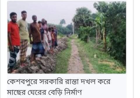 কেশবপুরে সরকারি রাস্তা দখল করে মাছের ঘেরের ভেড়ি নির্মাণের অভিযোগ।