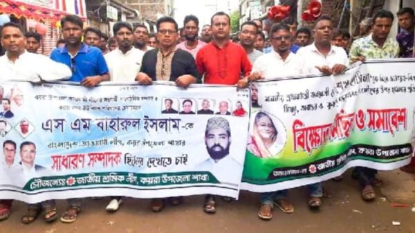 বাহারুলকে উপজেলা আওয়ামীলীগের সাধারন সম্পাদক করার দাবীতে কয়রায় মিছিল।