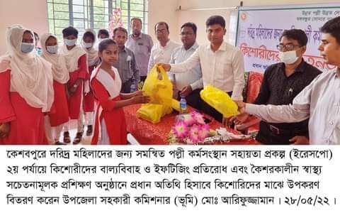 কেশবপুরে বাল্যবিবাহ ও ইফটিজিং প্রতিরোধে কিশোরীদের সচেতনামূলক প্রশিক্ষণ ও উপকরণ বিতরণ অনুষ্ঠিত।