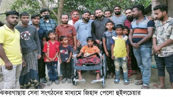 ঝিকরগাছায় সেবা সংগঠনের মাধ্যমে জিহাদ পেলো হুইলচেয়ার।