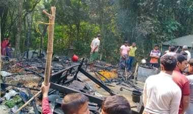 বগুড়ার শেরপুরে শর্টসার্কিট থেকে আগুন লেগে পুড়ে ছাই হয়েছে এক ভ্যান চালকের বসতবাড়ী।