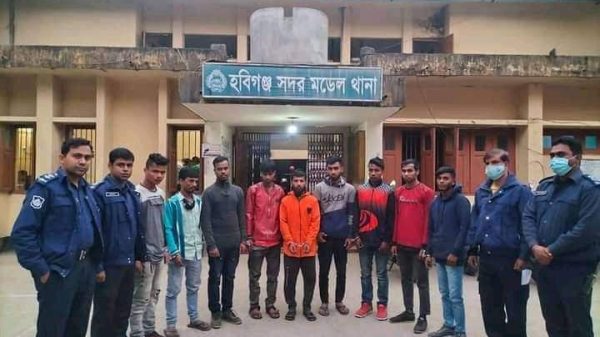 হবিগঞ্জে পুলিশের অভিযানে গভীর রাতে ৯ যুবক গ্রেফতার ।
