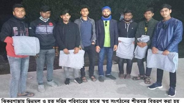 ঝিকরগাছায় ছিন্নমূল ও হত দরিদ্র পরিবারের মাঝে স্বপ্ন সংগঠনের শীতবস্ত্র বিতরণ।