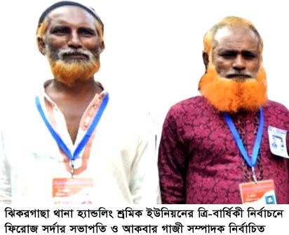 ঝিকরগাছা থানা হ্যান্ডলিং শ্রমিক ইউনিয়নের ত্রি-বার্ষিকী নির্বাচন ফিরোজ সর্দার সভাপতি ও আকবার গাজী সম্পাদক নির্বাচিত।