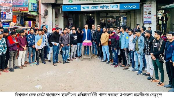 বিশ্বনাথে কেক কেটে ছাত্রলীগের প্রতিষ্ঠাবার্ষিকী পালন।